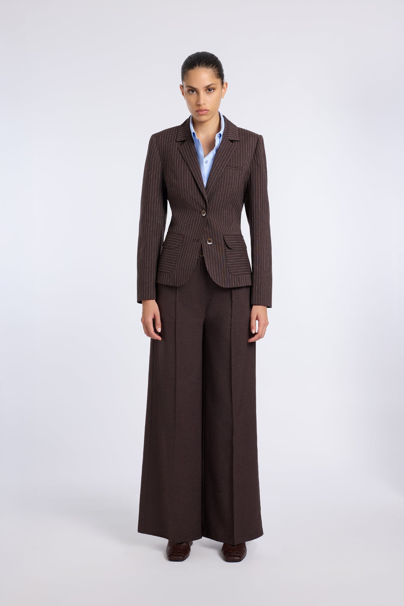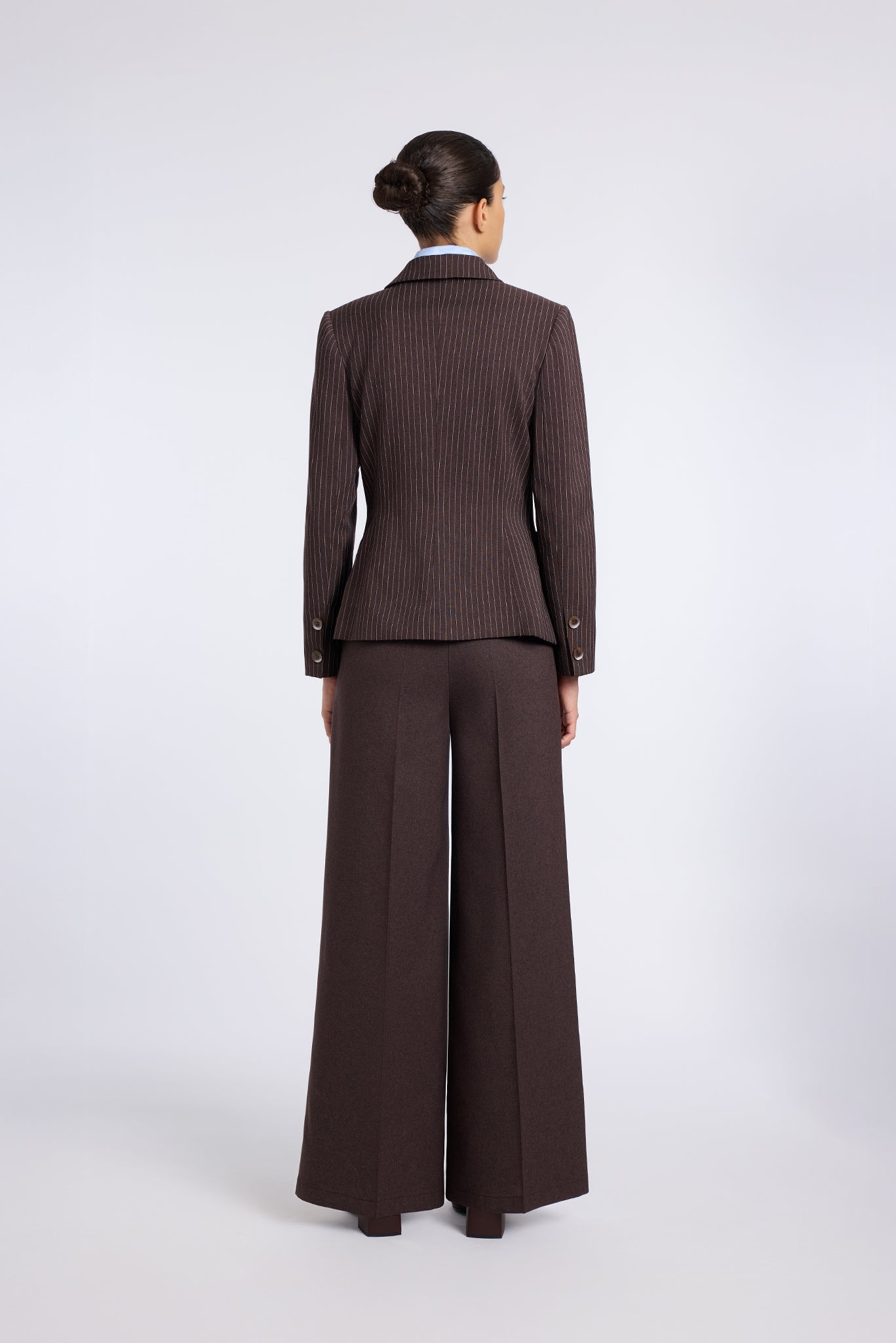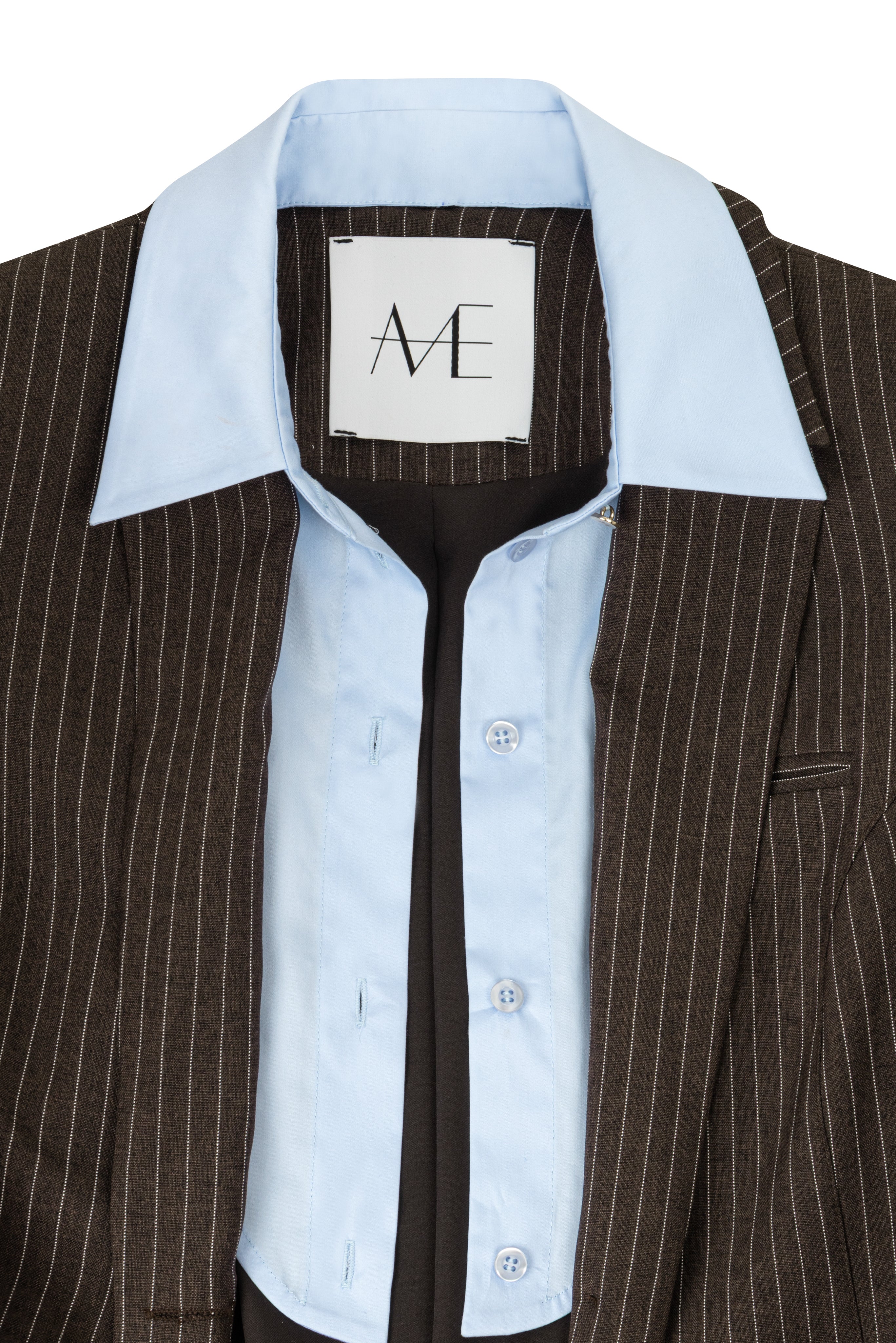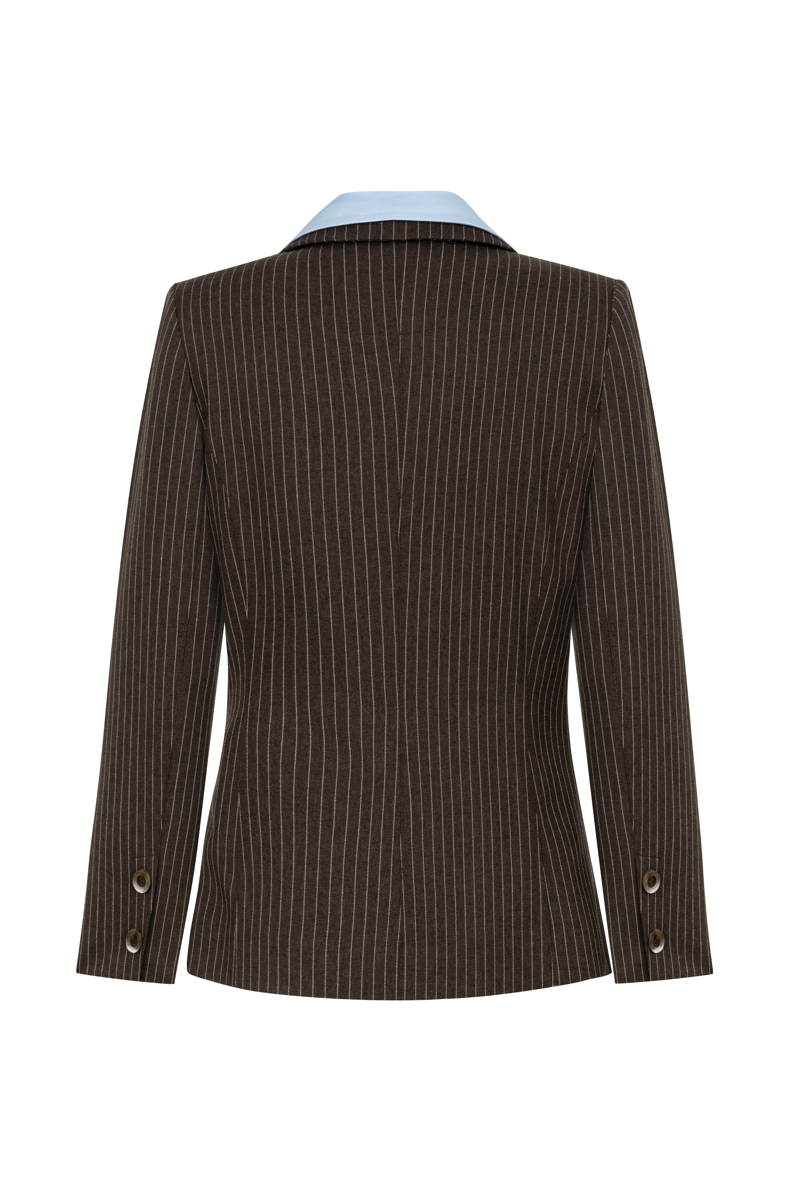 BROWN JACKET WITH BLUE COTTON COLLAR