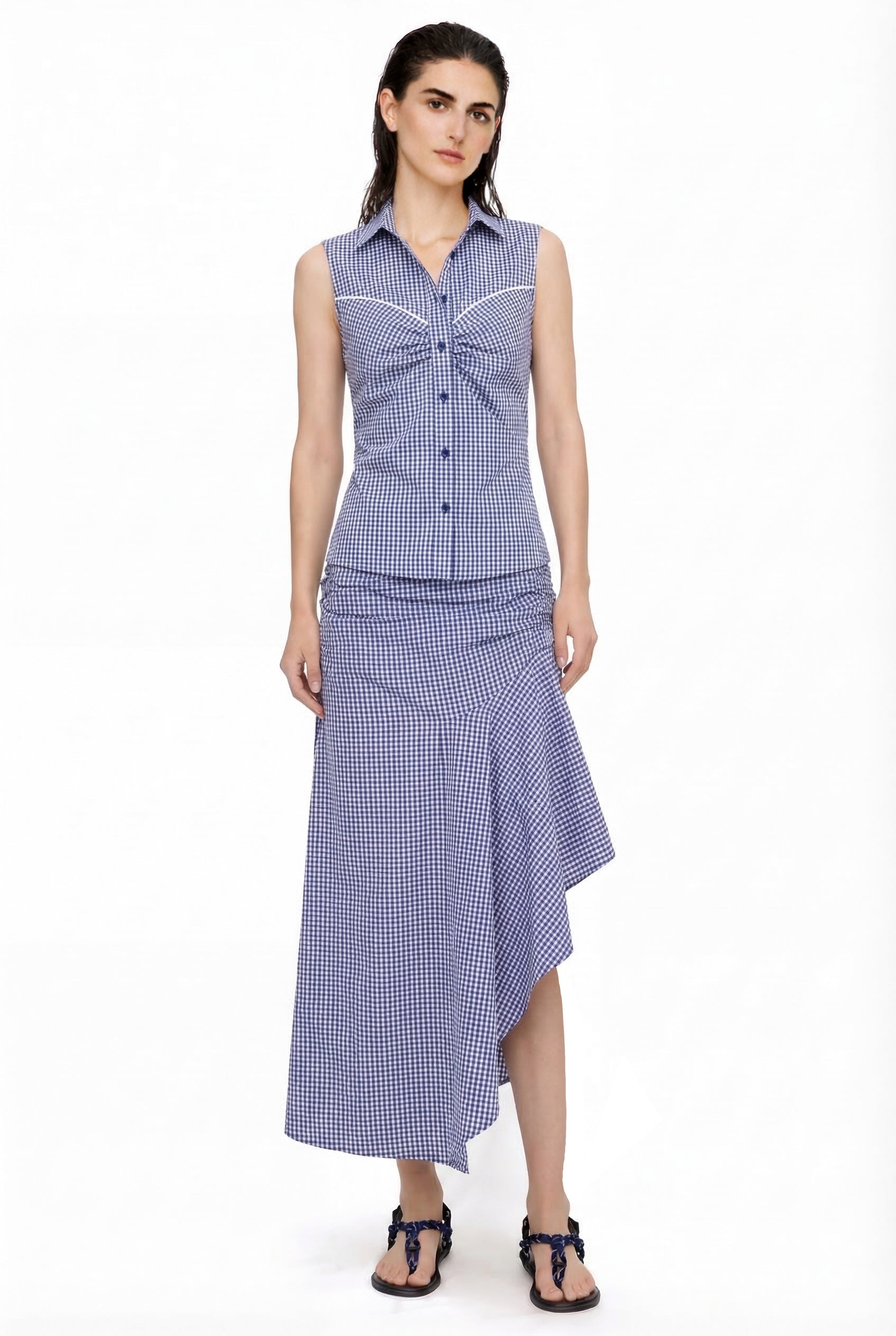 GINGHAM LIPARI BLOUSE WITH TOPSTICHING DETAIL
