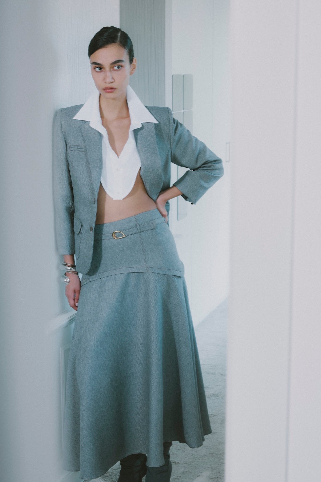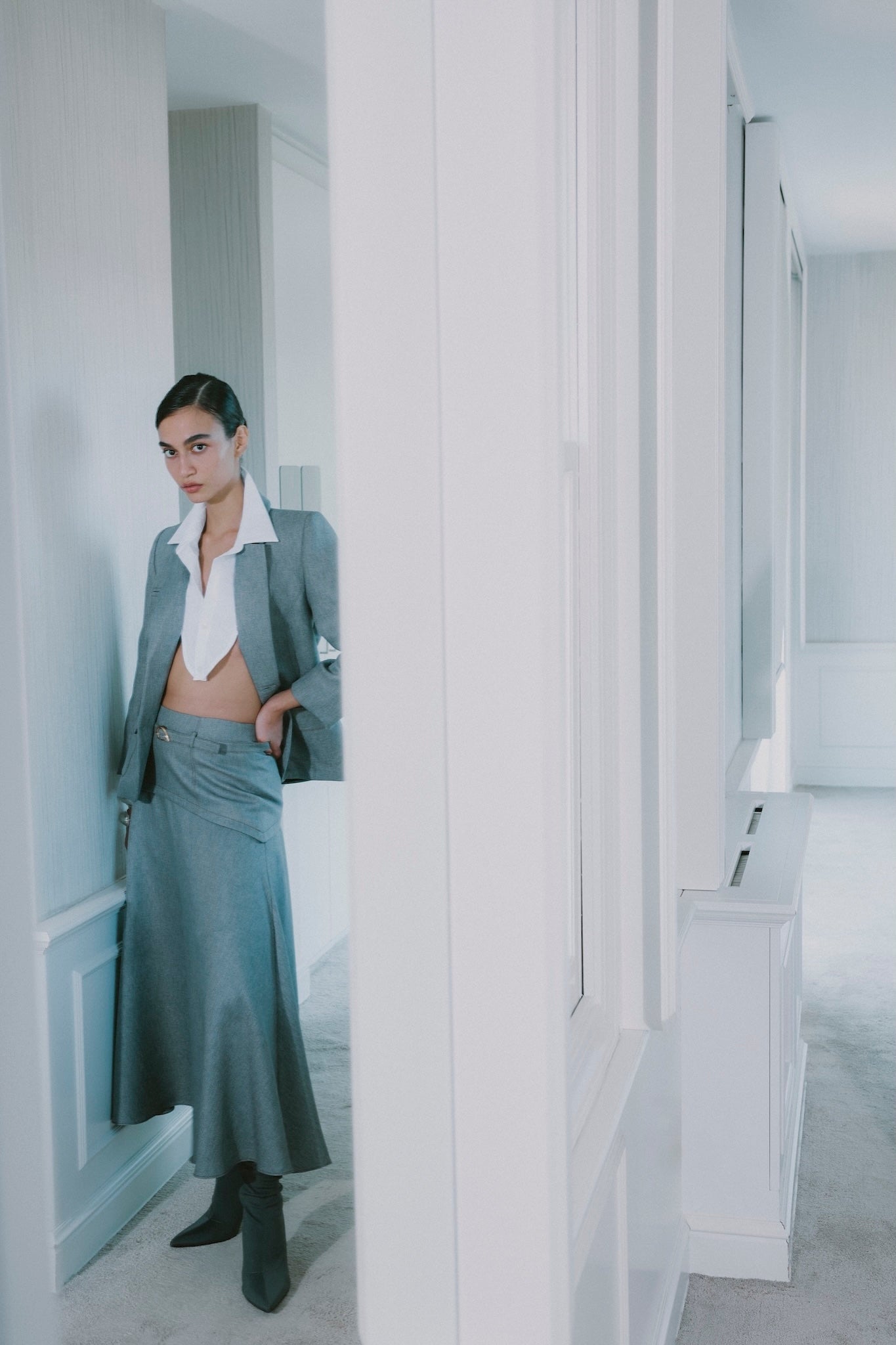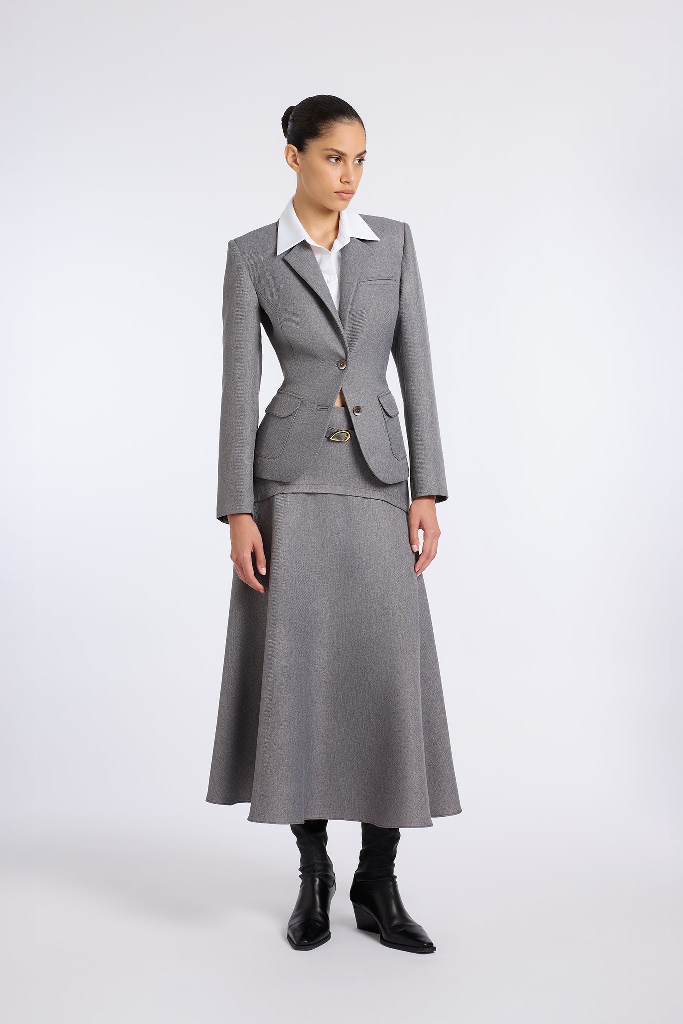 GREY JACKET WITH WHITE COLLAR